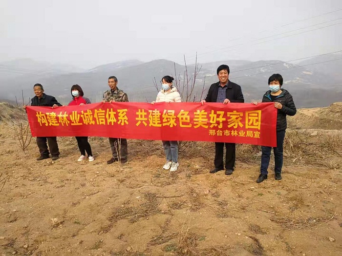 3月21日,市林业局林果专家耿新杰、胡运彩、施丽丽到信都区西黄村开展林果技术指导,现场讲解了桃树、苹果、樱桃的幼树整形修剪、土肥水管理、病虫害防治等技术措施,并将林业诚信体系宣传到田间地头。