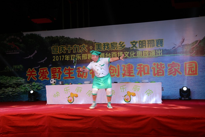 演出编排了歌舞、杂技、相声、京剧、河北梆子等各类节目15个,形式新颖、内容欢快、紧扣主题,在给观众带去欢声笑语的同时,也形象直观地宣传呼吁大家关爱野生动物,共同构建人与自然和谐相处新环境。