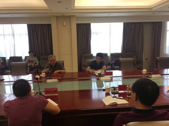 市林业局局长张明虎与国家林业局原党组副书记、副局长李育材就发展油用牡丹产业进行座谈