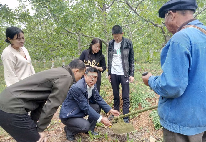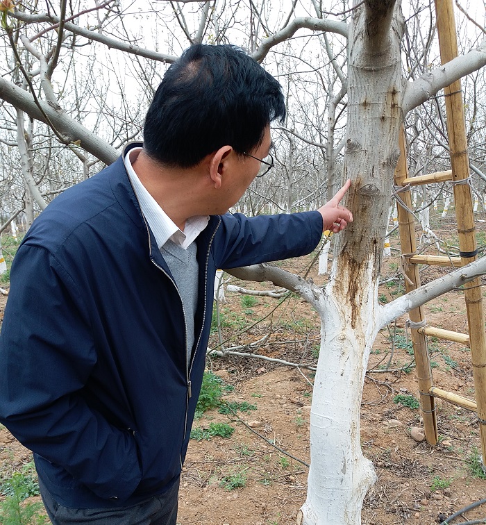 为了帮扶工作做到有的放矢,尽快收到成效,王俊志首先开展了调查研究工作,通过与公司有关工作人员座谈交流,实地察看了果树生长结果状况,病虫害发生情况,掌握了公司果树生产的基本情况,特别是核桃生产中存在的主要问题。经过认真分析研究,针对不少核桃树势较弱、结果能力下降等问题,王俊志提出了深挖沟、增加有机肥使用量的建议;针对部分树木上强下弱、光照不足等问题,提出了落头、调整数体结构的建议。同时,参与并指导核桃树干涂白等工作。为提高公司技术人员的业务能力,王俊志还积极开展技术培训和现场技术指导,送去了《核桃病虫害诊治图谱》《核桃病虫害防治彩色图说》《图说核桃周年修剪与管理》《核桃高效栽培》等技术资料6套24本,带领局年轻技术人员赴公司开展工作30人次,取得了较好效果。