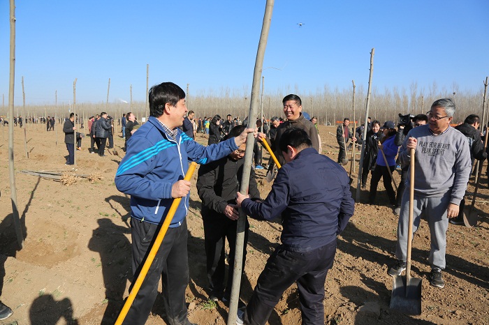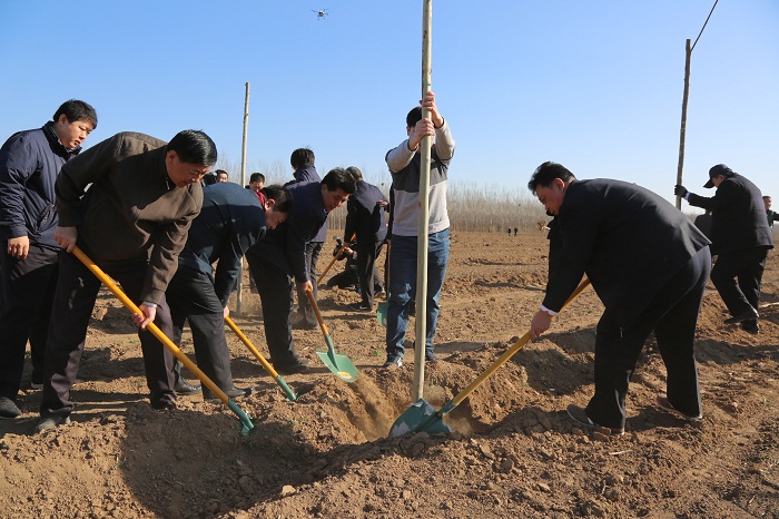今天植树现场位于新建环城公路南外环,参加植树的主要有市四大班子领导和机关人员以及开发区机关干部职工,约700多人。今天植树任务约7000株,造林100余亩。树种主要有白蜡、法桐、黄桃。今天的植树基地是开发区筹划建设的“十里清风”田园综合体项目的组成部分。另外,除市四大班子统一集中植树外,其它市直单位及驻市大型企业义务植树活动与农村环境综合整治和美丽乡村建设相结合,继续实行单位包村绿化,共涉及77个单位分包邢台县、沙河市和内丘县、开发区的104个村的绿化任务。各单位的植树活动将结合所包村实际,以到村现场植树、以资代劳等多种形式履行植树义务。