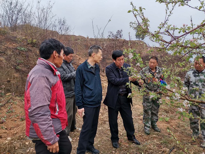 4月10日5点左右,我市西部山区开始出现不同程度的降雪,气温降至零下。目前,核桃等果树正值花期,其他果树进入幼果期,这次大幅度降温预计会出现不同程度的冻害。降雪发生后,市林业局立即行动,全力开展果树管理技术服务指导。一是及时制定雪后果树管理措施,通过微信群、网站、微博等途径广泛传播,指导果农积极开展雪后管理;二是由局长张明虎牵头,4名局领导带领8名高级专业技术人员分四组深入到西部山区实地查看雪后果树受灾情况,现场指导果农落实雪后各项管理措施;三是购买生长调节剂、叶面肥等近万元物资,分发到果农手中及时喷洒,提高果树抗性。