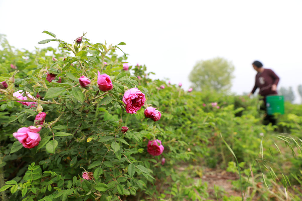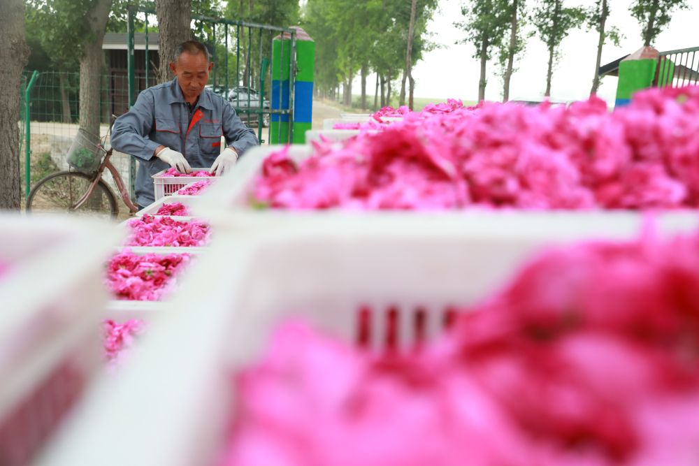 连日来,河北省邢台市任泽区玫瑰产业园内玫瑰花竞相绽放,工作人员忙着采摘、加工玫瑰花。近年来,任泽区积极调整农业产业结构,引进特色玫瑰花产业项目,形成集玫瑰种植、加工、销售为一体的产业链,同时采取“公司+基地+农户”等多种管理模式,促进农民增收、农业增效,助力乡村振兴。