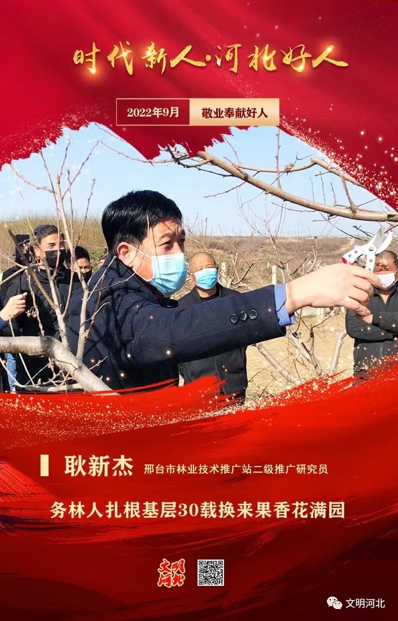 9月30日,河北省文明办在“冀云·河北省道德领域先进典型网上发布厅”发布2022年9月“时代新人·河北好人”,我局林业技术推广站耿新杰入选敬业奉献榜单