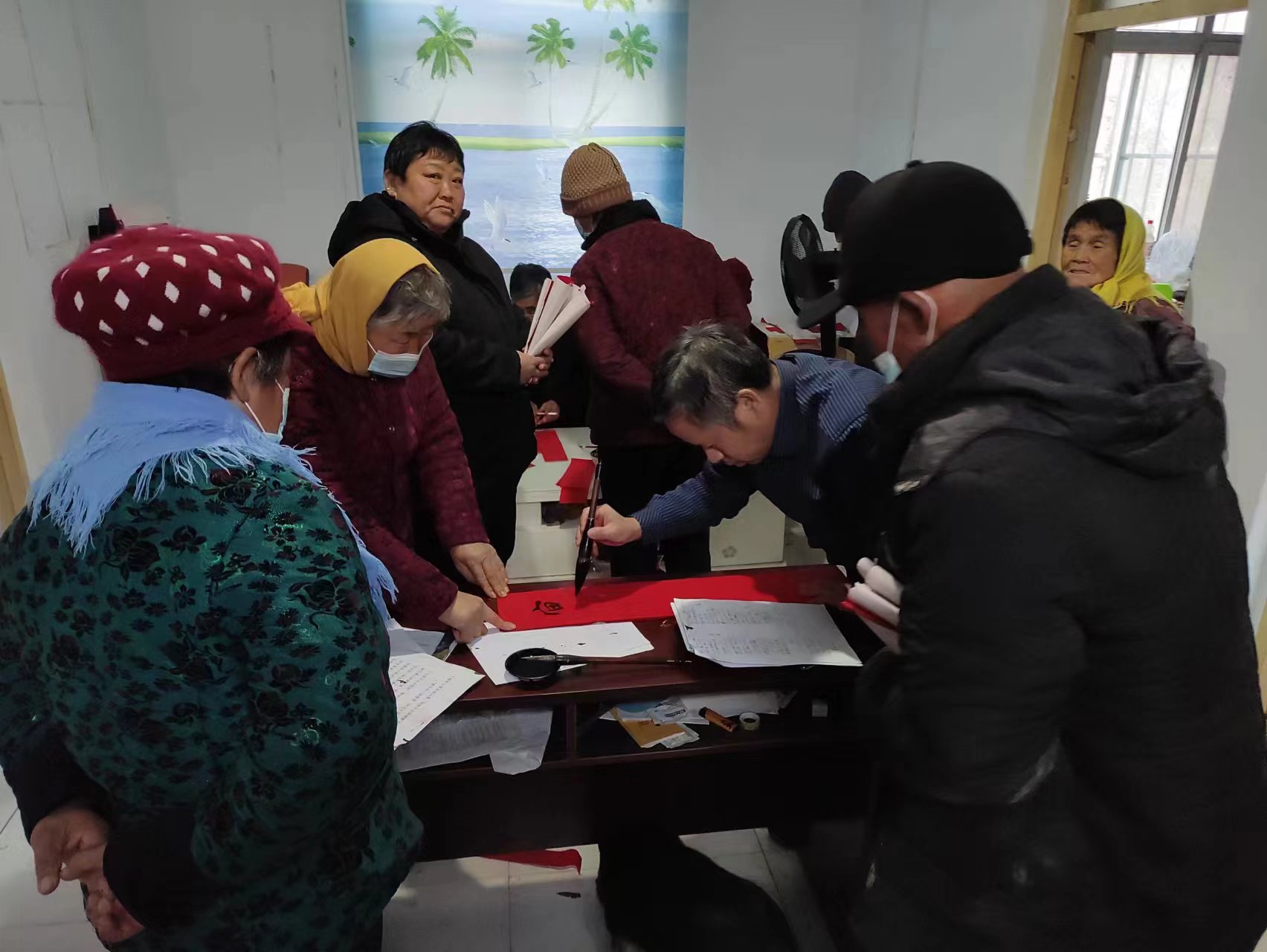 二是春联,拉近干群关系。采购大红纸300张,利用3天时间,不分昼夜,为全村群众免费书写各类对联、神码等600余幅,做到了家家全覆盖户户都有份。驻村工作队队长姚宪法每天站立10多个小时奋笔疾书,虽然累得腰酸腿疼,但看到村民期待而来满意而归,所有疲劳一扫而光。为表示感谢,有的村民送来红薯、有的送来腌肉和白菜等慰问驻村队员,干群关系进一步拉近。