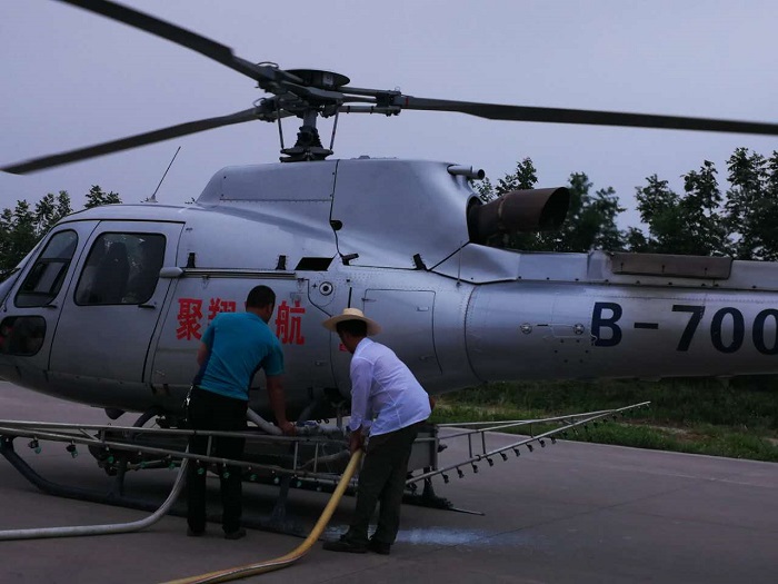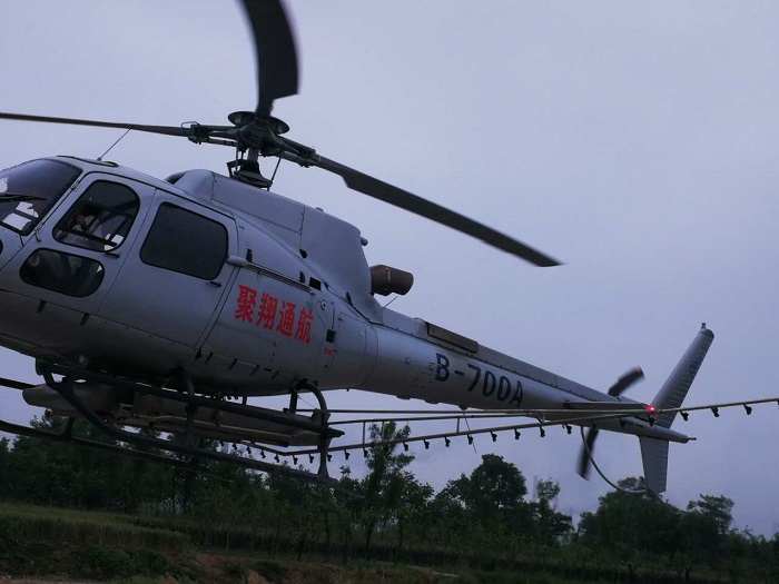 5月17日,市林业局局长张明虎到沙河市检查飞机防治美国白蛾作业情况。