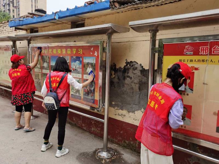 7月4日上午九点,市林业局志愿者从局机关出发组织开展“净走”活动,途经守敬路、育英街、冶金路、中华路,沿途拾捡垃圾并规整11辆非机动车辆乱停放等不文明现象。到达五四社区长征西苑小区后,志愿者们进行垃圾清理、清除杂草、协助社区拆除违章建筑等,助力创城攻坚。