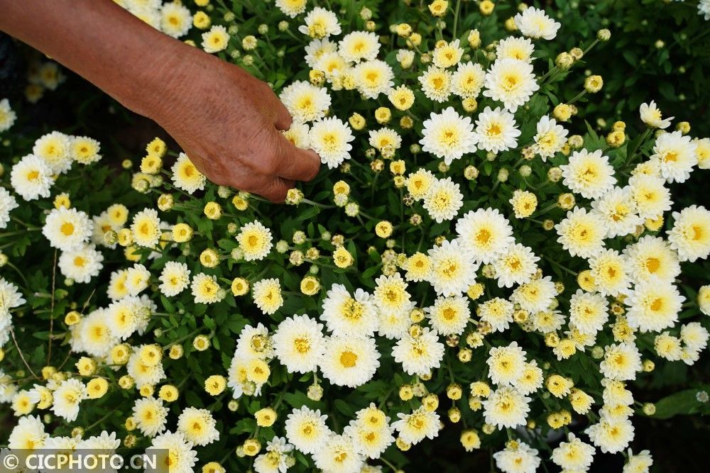 ↑2020年8月31日,在河北省邢台市巨鹿县大屯头村种植的菊花。CICPHOTO/胡良川 摄