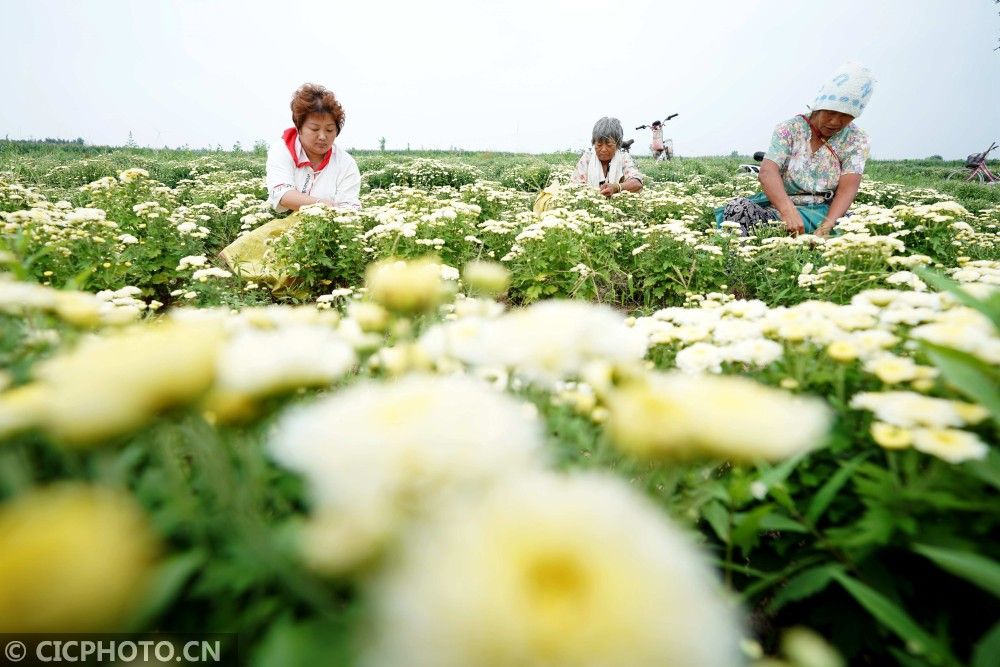 近日,河北省邢台市巨鹿县大屯头村400余亩的菊花进入收获季,农户抢抓农时加紧采收。近年来,巨鹿县在推进精准扶贫过程中,采取“基地+农户”经营管理模式,引导农民发展药菊、茶菊等特色菊花种植,并依托企业将菊花制成高附加值产品。目前,全县菊花种植面积4000余亩,带动当地农民脱贫增收。