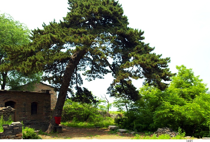 古松位于信都区白云山东岭三教堂子孙殿前,共2株,树龄千年以上,俗称白云山不老松。东侧一株树高28米,胸围285厘米,冠幅15×15米,树干上下通直,雄伟挺拔,高耸入云。西侧一株树高16米,胸围245厘米,冠幅17×14米。古松的根部像一条蛰伏的巨蟒盘绕在石缝间,鳞片斑斓的树干笔直向上,蓬勃舒展的树冠遮天蔽日,探出悬崖之外。两株古松一个像顶天立地的武士,刚健而又质朴,一个像饱经风霜的老人,默默地在诉说着白云山的历史。