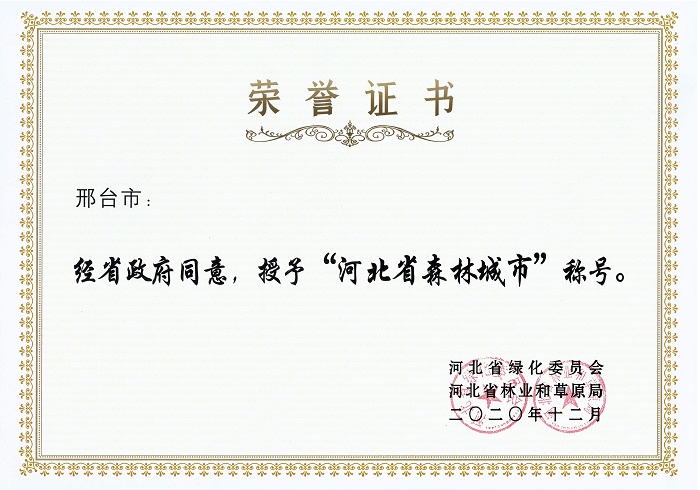 邢台市荣获“河北省森林城市”称号