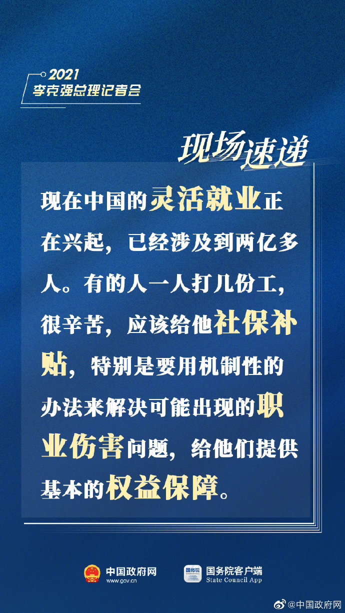 总理记者会现场重磅:应该给予灵活就业人员社保补贴,用机制办法解决职业伤害问题