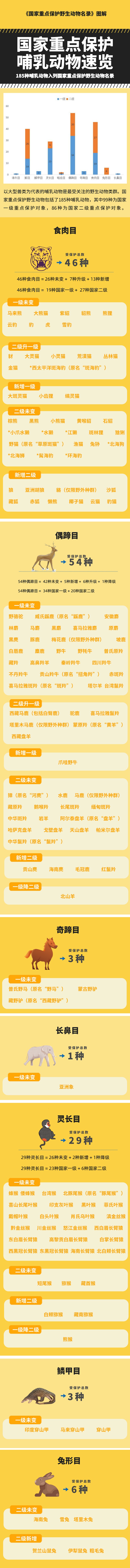 一图速览 | 185种哺乳动物入列国家重点保护野生动物名录
