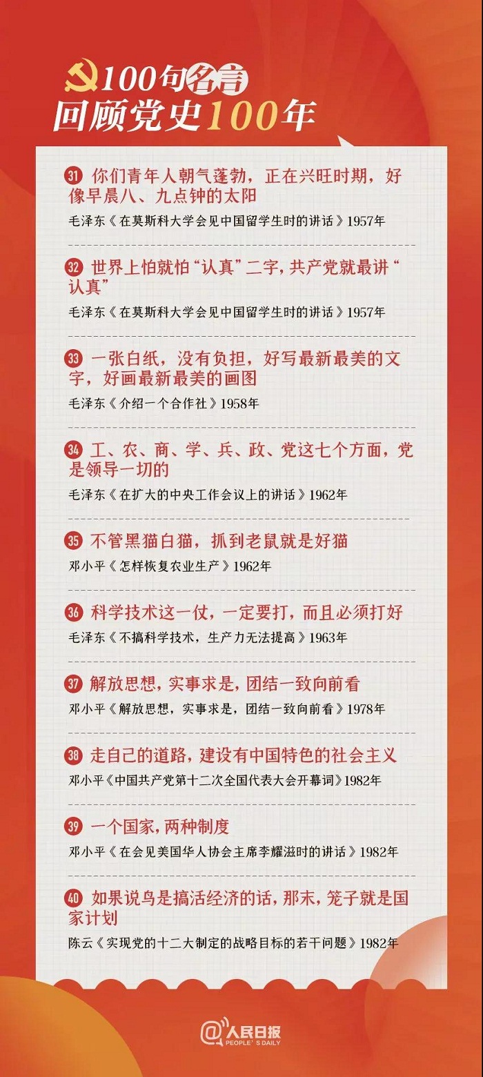 100句名言,重温峥嵘岁月↓↓转存学习!