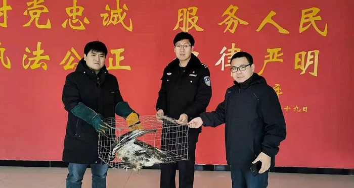 近日,宁晋县自然资源和规划局接到苏家庄镇政府电话,反映该镇派出所救助了一只大鸟,需要进一步救护。工作人员赶往现场察看实情后,经初步鉴定,这只大鸟为国家二级保护动物毛脚鵟,在详细检查后未发现有明显外伤,随后将其送往邢台市园林中心动物管理所,由专业人员进行救护。