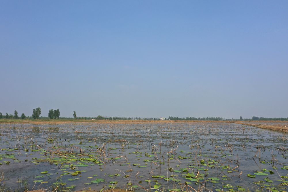 通过水利建设,邢台市新河县白穴口村之前的千余亩沙荒地变成了千亩荷塘。(受访者供图)