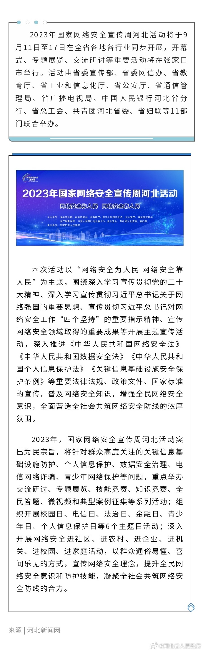 2023年国家网络安全宣传周河北活动于9月11日至17日举行