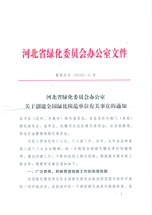 附件:河北省绿化委员会办公室关于创建全国绿化模范单位有关事宜的通知