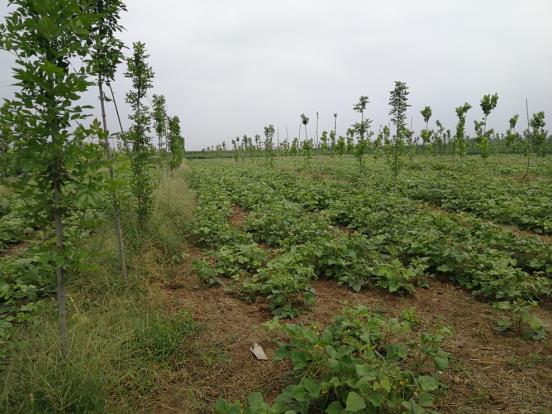吕寨镇后张八村个体家庭农场流转村内土地460余亩,种植清香核桃,树下间作种植有中药材紫苑、丹参和知母,属于果药间作高效模式。农场种植户韩峰向卢县长介绍该模式的种植和效益情况时说,树下间作的中药材均有县林业局引进的亳州药商进行技术指导,并签有保护价回收订单,每亩最低效益保证在2000元以上。老官寨镇郑庄村种植户流转村内土地350亩种植白蜡、法桐混交林,林相整齐,长势良好,林下间作黄豆、绿豆。