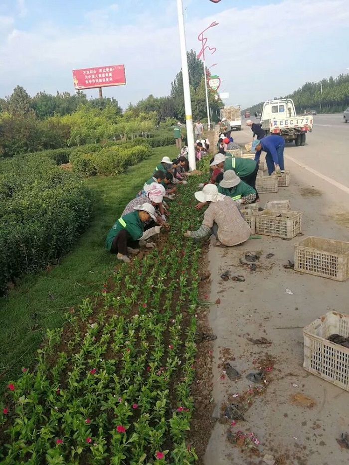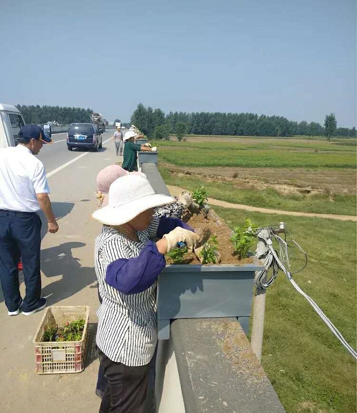 二是对过村路段两侧花池进行绿化。沿途过村路段两侧花池内,栽种金叶榆等乔木、花灌木9500株,打造舒适宜居的乡村田园。