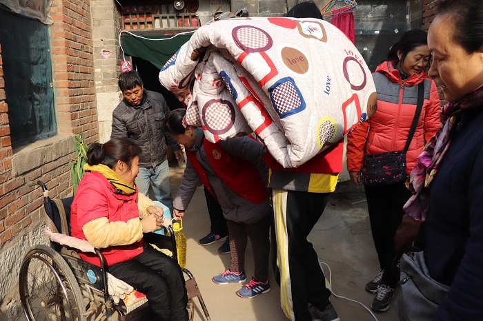 11月20日上午,邢台县林业局联合邢台市公益服务协会,一起开展了主题为“爱在邢襄,情系贫困,温暖太行”的慰问贫困户爱心公益活动,走进会宁镇三个村共6户残疾贫困家庭,送去棉被、棉衣、挂面、食用油等慰问品,为贫困群众送去关怀与温暖。