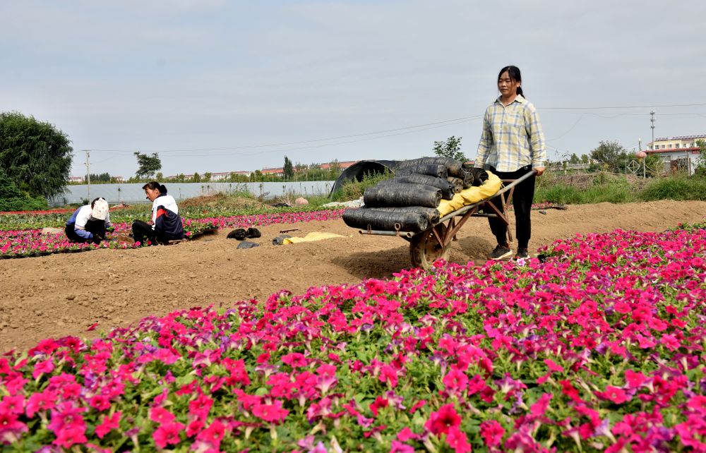 如今,王素霞的鲜花种植基地占地60余亩,建起了20个大棚。“种花养花让我们精气神十足,生活更有奔头。”王素霞说。